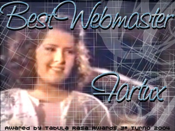 Per quanto riguarda Best Community scelgo The Buffy's World of Spoilers. Si doveva valutare il coinvolgimento dei visitatori. Bhè in Tbwof ho notato il maggior coinvolgimento e il maggior numero di visitatori iscritti. Anche se c'è da dire che Tbwof merita la sua vittoria anche per la fama che si è fatto nel corso di tre anni. Inoltre a questo si aggiunge che le news e gli spoiler arrivano sempre anticipatamente rispetto agli altri siti/newsgroup e gli iscritti li commentano con fervore ^_^.